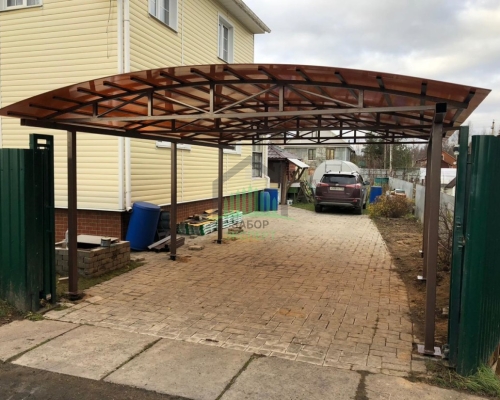 Откатные ворота, кирпич для столбов и все сопутствующие материалы для ленточного фундамента доставляются отдельно.